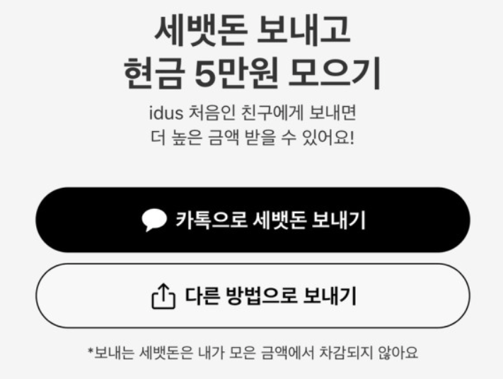 아이디어스(IDUS) 세뱃돈 이벤트: 현금 5만원의 기회를 잡으세요! 저는 이미 5만원을 받았습니다!